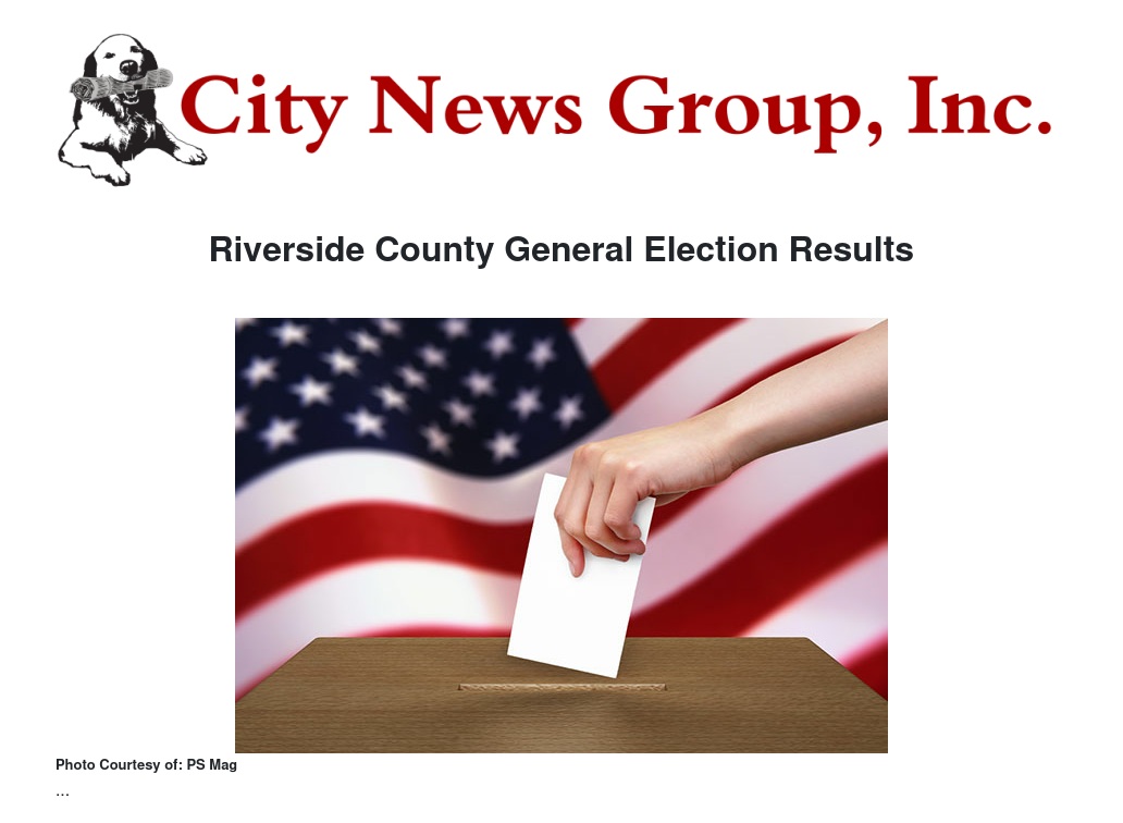 Click the link below for current General Election results as provided by the County of Riverside Registrar of Voters.