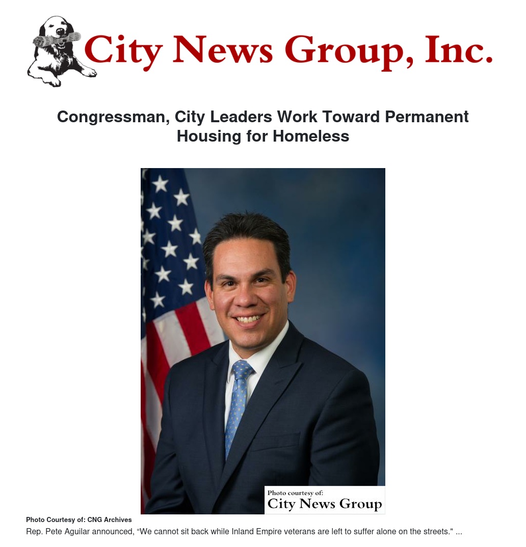 “I’m grateful to have had the opportunity to tour the facility and meet with our city leaders to discuss homelessness in San Bernardino. This is a huge problem in our community, especially among our veteran population. I look forward to working with our community and local leaders to curb this crisis and to help San Bernardino families find safe and stable homes,” said Rep. Aguilar.