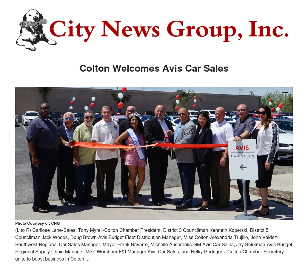 If you have ever rented a car for that long anticipated family vacation, a fun road trip with friends, or that spin in your dream convertible, chances are you rented from Avis. Avis Car Rental operates one of the world’s best-known car rental brands and has a long history of innovation in the car rental industry. Recently, Avis announced the opening of several car sales locations across several states through its Avis Car Sales program. They have chosen the hustling bustling community of Colton to expand their new and exciting program. “We are excited to be in Colton, our first location in the Southwestern United States. We look forward to all the activity and growth that Colton is experiencing and being a part of that,” says John Valdez, the Southwest Regional Car Sales Manager of for Avis Budget.