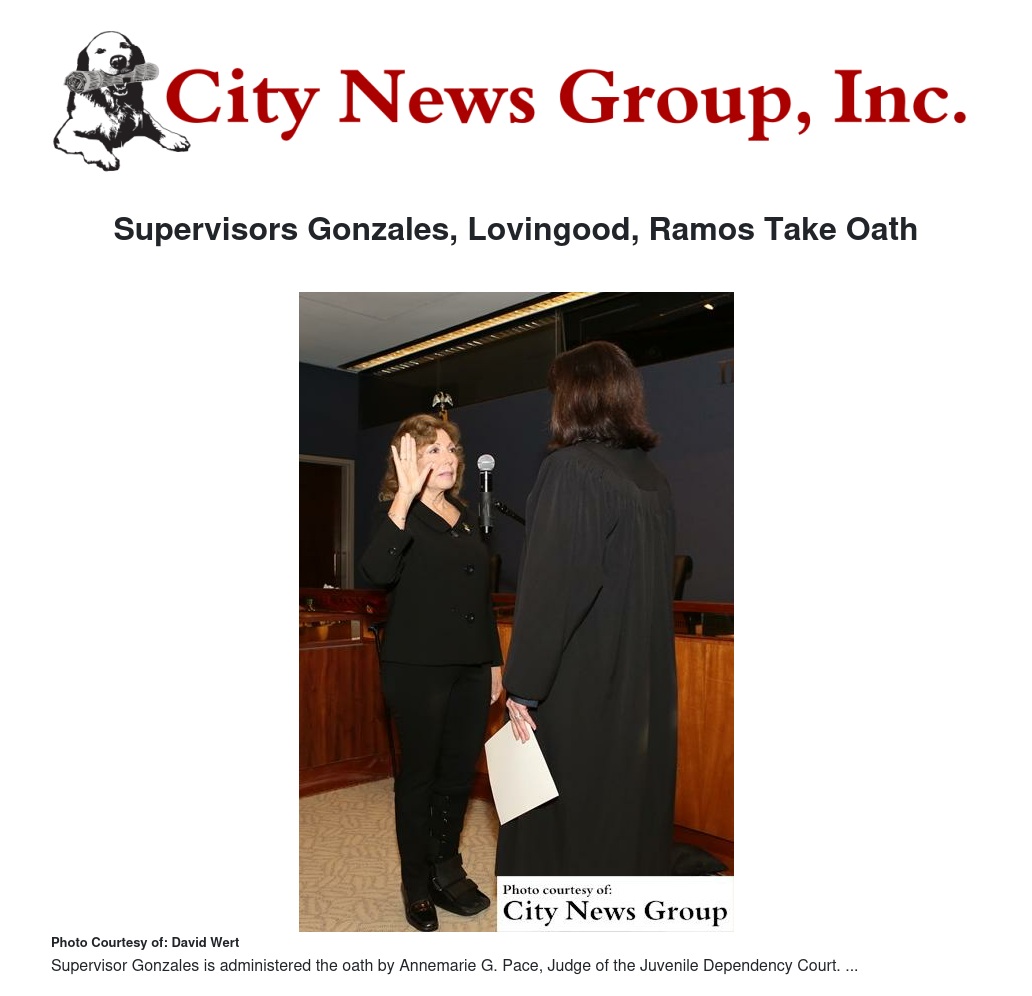 Supervisors Lovingood, James and Gonzales join Supervisors Curt Hagman and Janice Rutherford in leading a dynamic public service organization of more than 22,000 employees working in dozens of agencies, departments and divisions that provide a diverse array of vital public services. Those services include public safety, economic development, aid to the needy, infrastructure construction and maintenance, elections, parks, museums, libraries, airports and a variety of healthcare services.