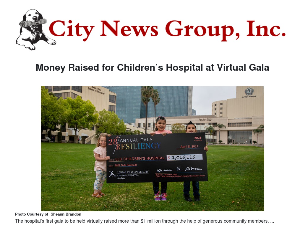 More than 1,000 community philanthropists and hospital supporters virtually gathered for 28th Annual Foundation Gala raising $1,009,115 for patients at Loma Linda University Children’s Hospital on April 8.
