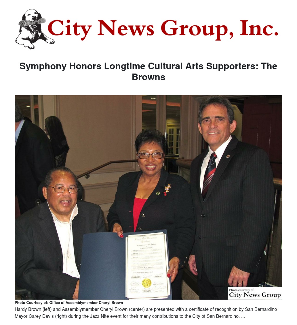 "I believe the San Bernardino Symphony is the best orchestra in the state of California and beyond," said Brown. "The quality of their performances amazes me. The theatre is beautiful and is on par with some of the best theatres in the nation. I hope the community will continue to support it."