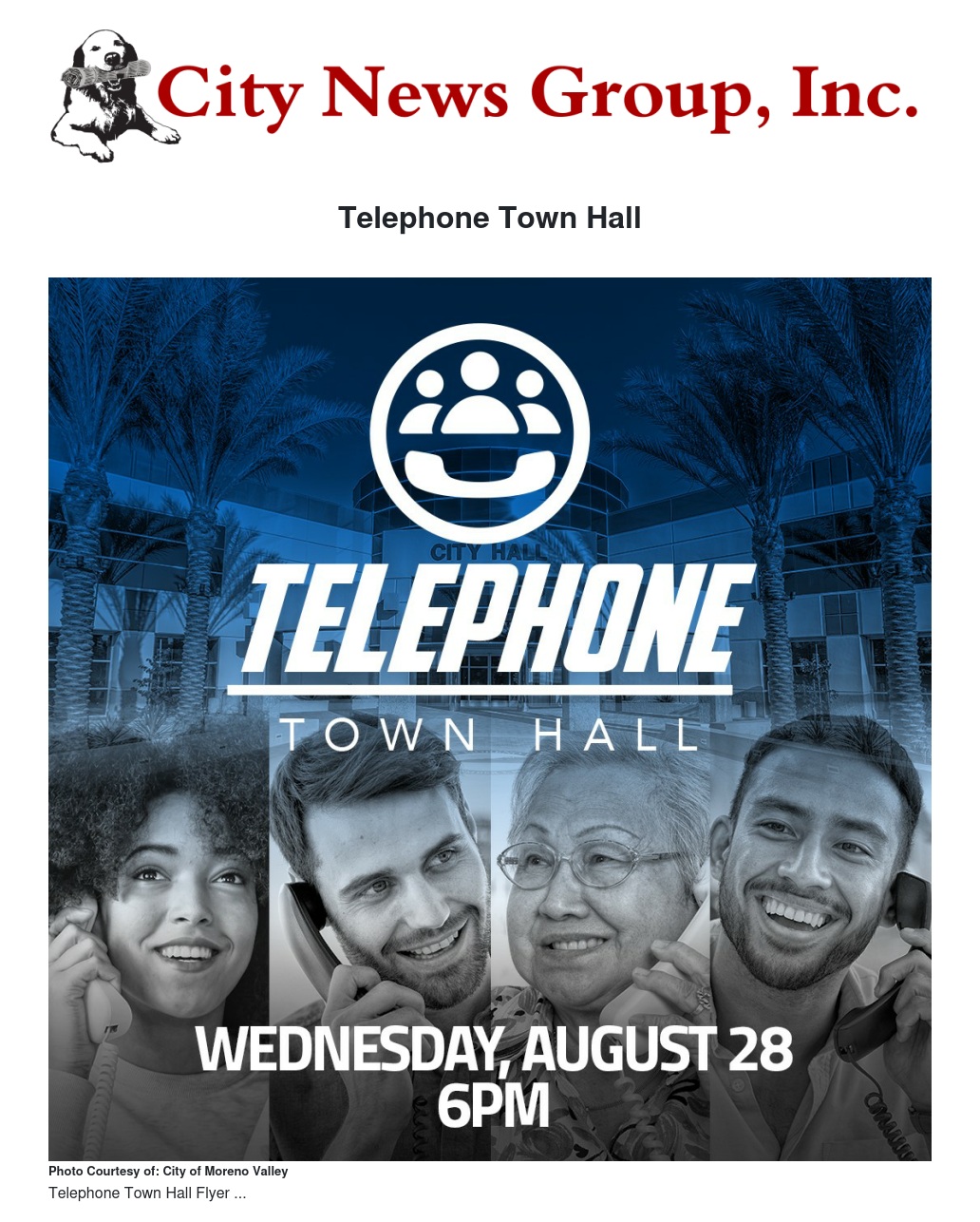 We have so many great things happening in our city, and we want you to be a part of the conversation. That’s why I'm excited to invite you to our upcoming Telephone Town Hall Meeting on Wednesday, August 28, at 6:00 p.m.