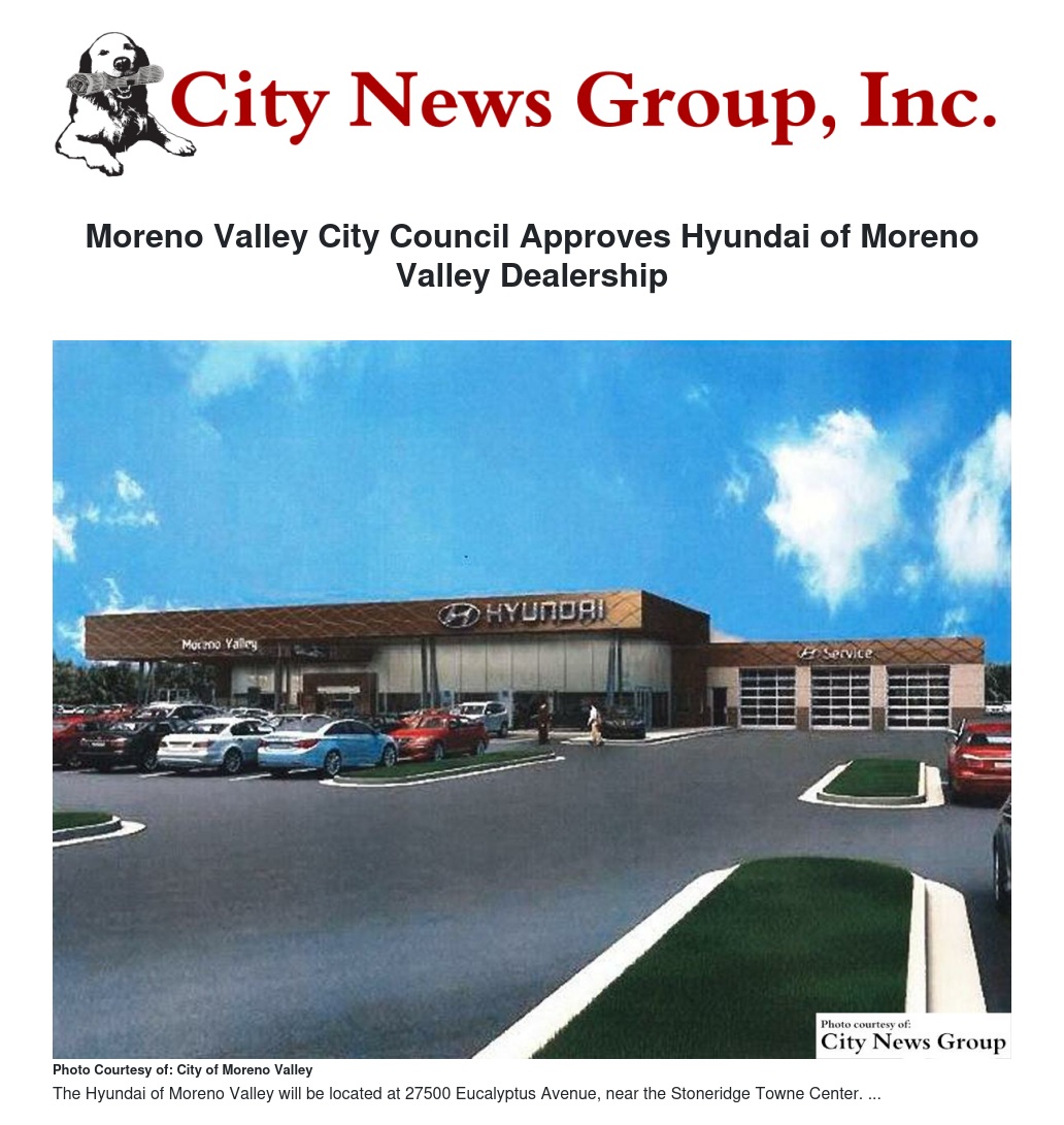 Moreno Valley City Council Approves Hyundai of Moreno Valley Dealership
