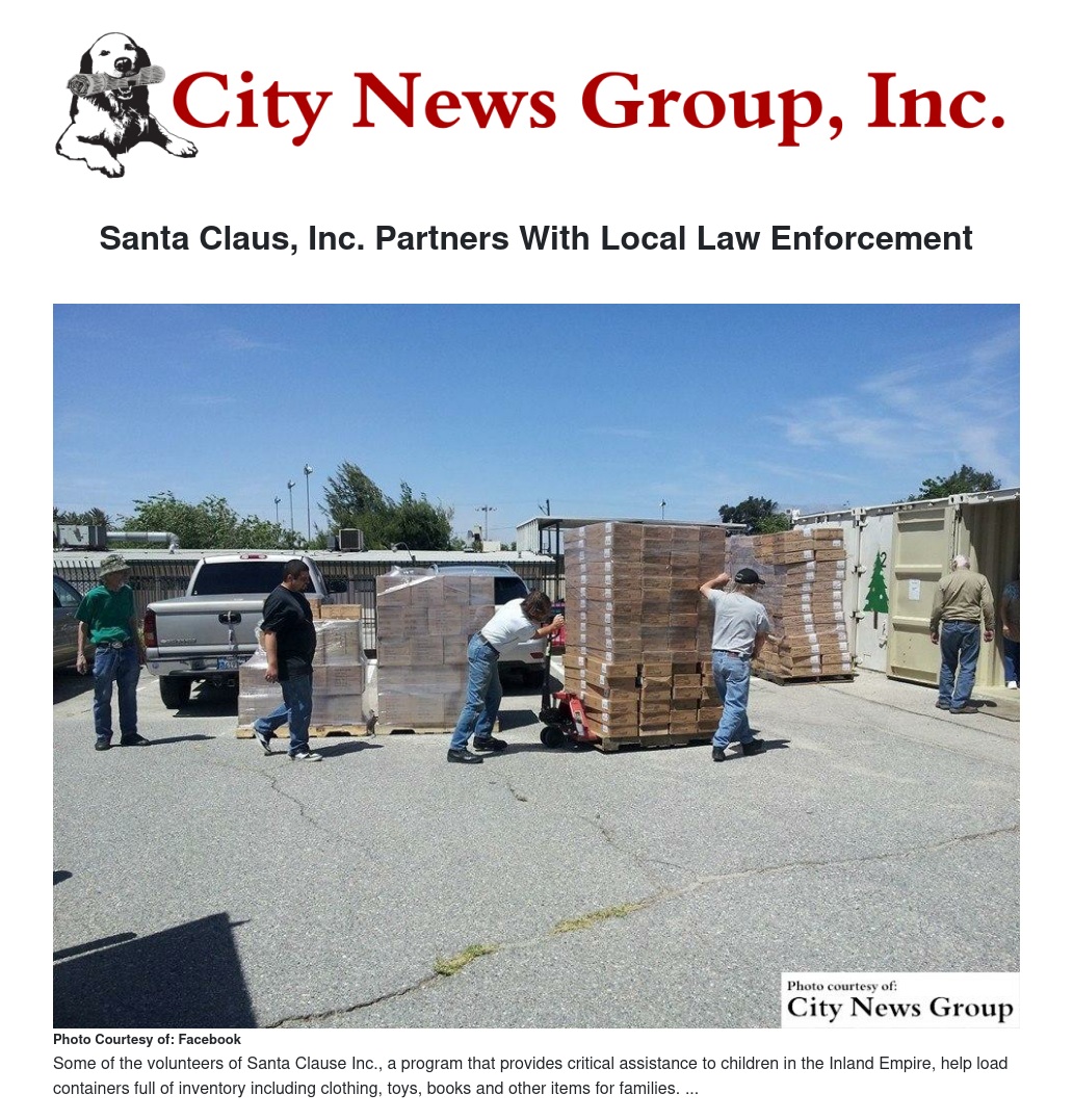 SAN BERNARDINO>> Santa Claus, Inc., a program that provides critical assistance to children in the Inland Empire by supporting and strengthening the family unit, announced a partnership with the San Bernardino Police Department and the San Bernardino County Sheriff’s Department HOPE team through “Project Step Up.”