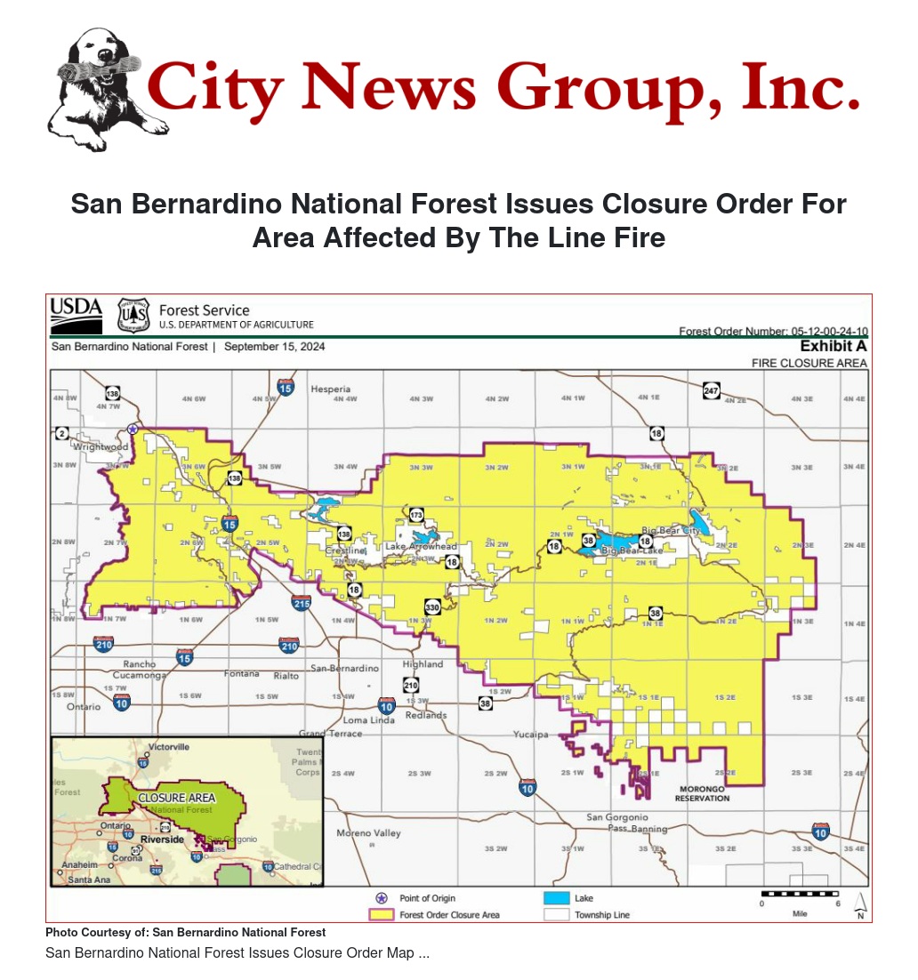 San Bernardino National Forest Issues Closure Order For Area Affected By The Line Fire by Stella Pierce - City News Group, Inc.