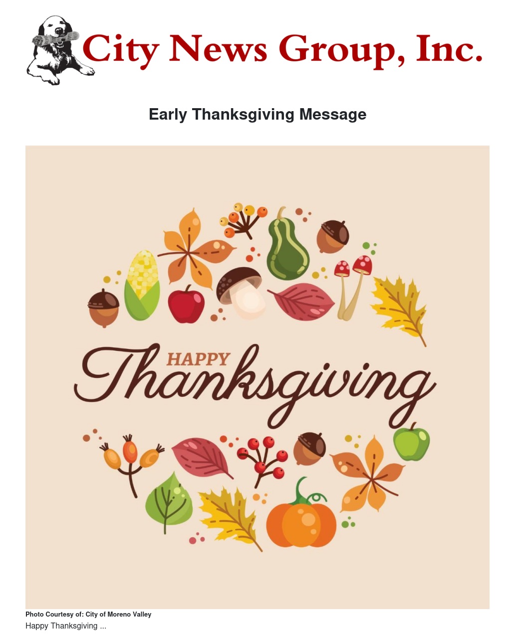 Early Thanksgiving Message
