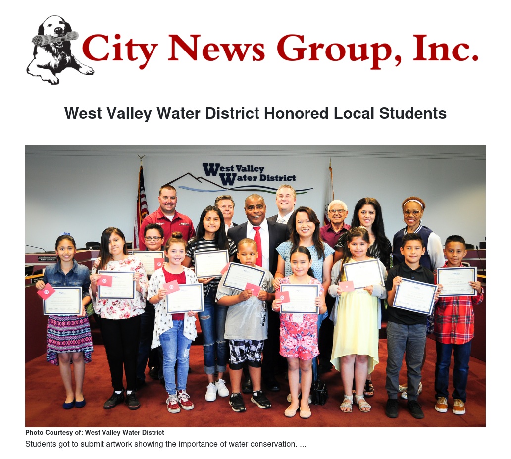 West Valley Water District Honored Local Students by Socorro Pantaleon - City News Group, Inc.