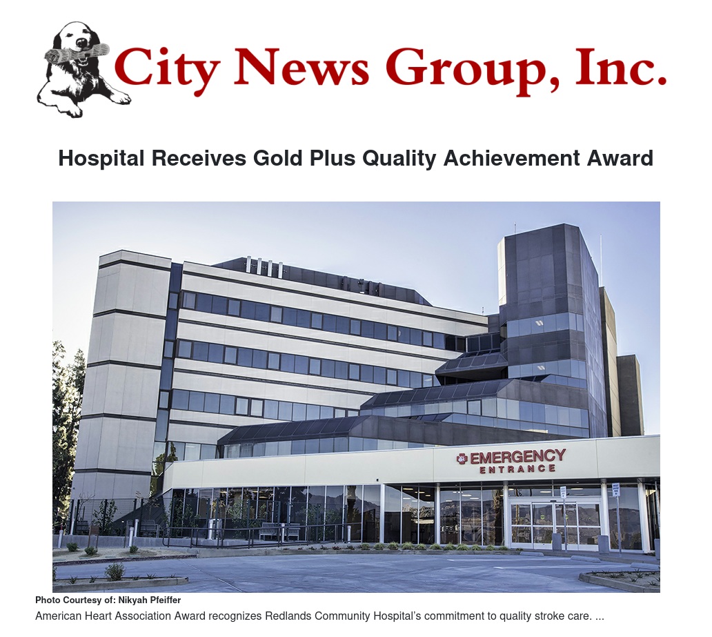 Redlands Community Hospital has received the American Heart Association/American Stroke Association’s 2018 Get With The Guidelines®-Stroke Gold Plus Quality Achievement Award with Target: StrokeSM Honor Roll. The award recognizes the hospital’s commitment to ensuring stroke patients receive the most appropriate treatment according to nationally recognized, research-based guidelines based on the latest scientific evidence. This is the fourth consecutive year that Redlands Community Hospital has earned the gold level recognition.
