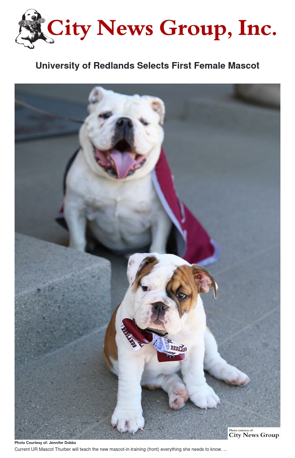 REDLANDS>> For the first time since the start of the century-old tradition, the University of Redlands has selected a female pup to be the University’s next live bulldog mascot.