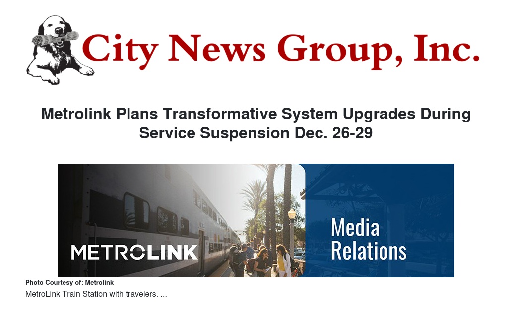 Metrolink Plans Transformative System Upgrades During Service Suspension Dec. 26-29 by MetroLink - City News Group, Inc.