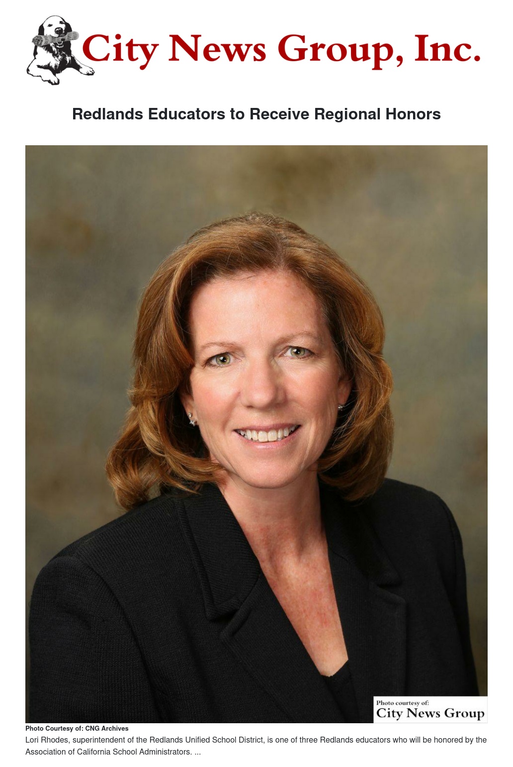 The Office San Bernardino County Superintendent of Schools announced March 10 that RUSD's Kathy Jeide, principal at Lugonia Elementary School, Superintendent Lori Rhodes and former Board President Pat Kohlmeier will be joined by other county education leaders during the annual celebration slated for April 20.