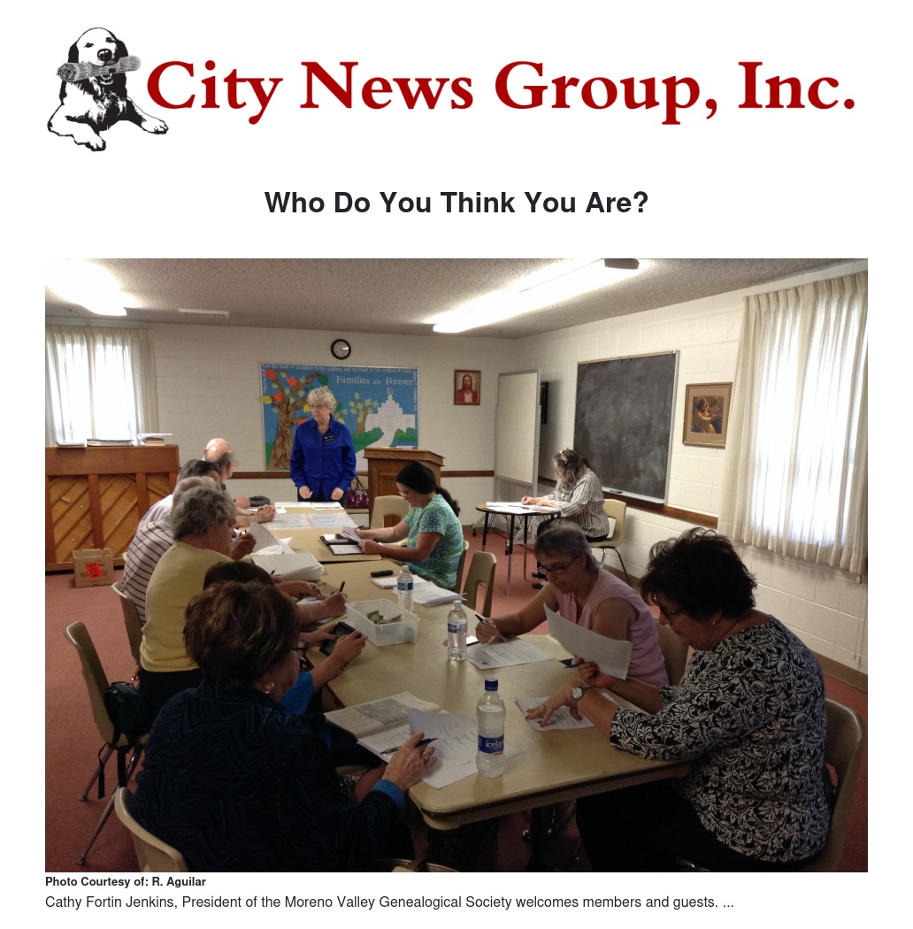 The Moreno Valley's Genealogical Society makes a constant effort to understand where it is they come from: culturally, historically, religiously, and when possible, medically.