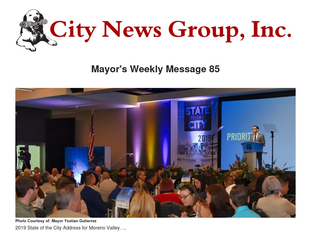 The recent State of the City event was very successful, and I thank everyone who worked so hard to make it by far the best such event in the Inland Empire. It was a sell-out, so if you couldn’t attend, it’s posted on the city’s YouTube and is running on MVTV-3 for you to watch at your leisure.
