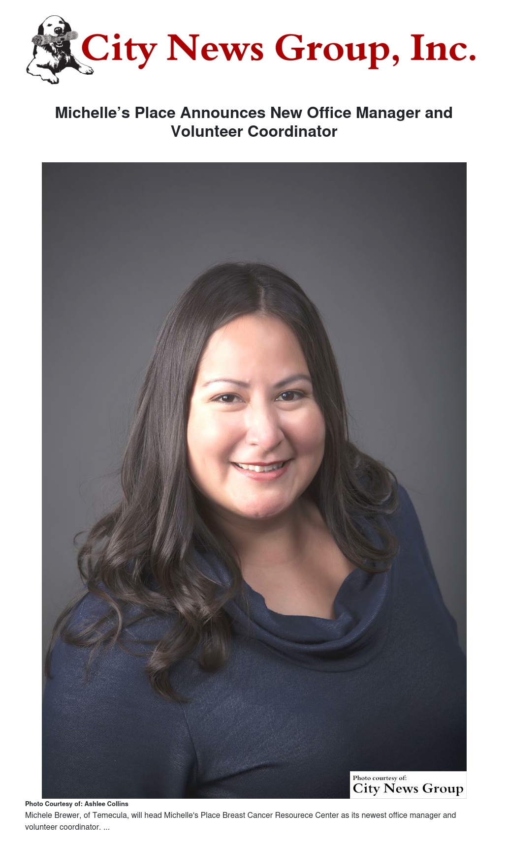 Michelle’s Place Breast Cancer Resource Center has announced that local Temecula resident, Michele Brewer, has been hired as the new office manager and volunteer coordinator.