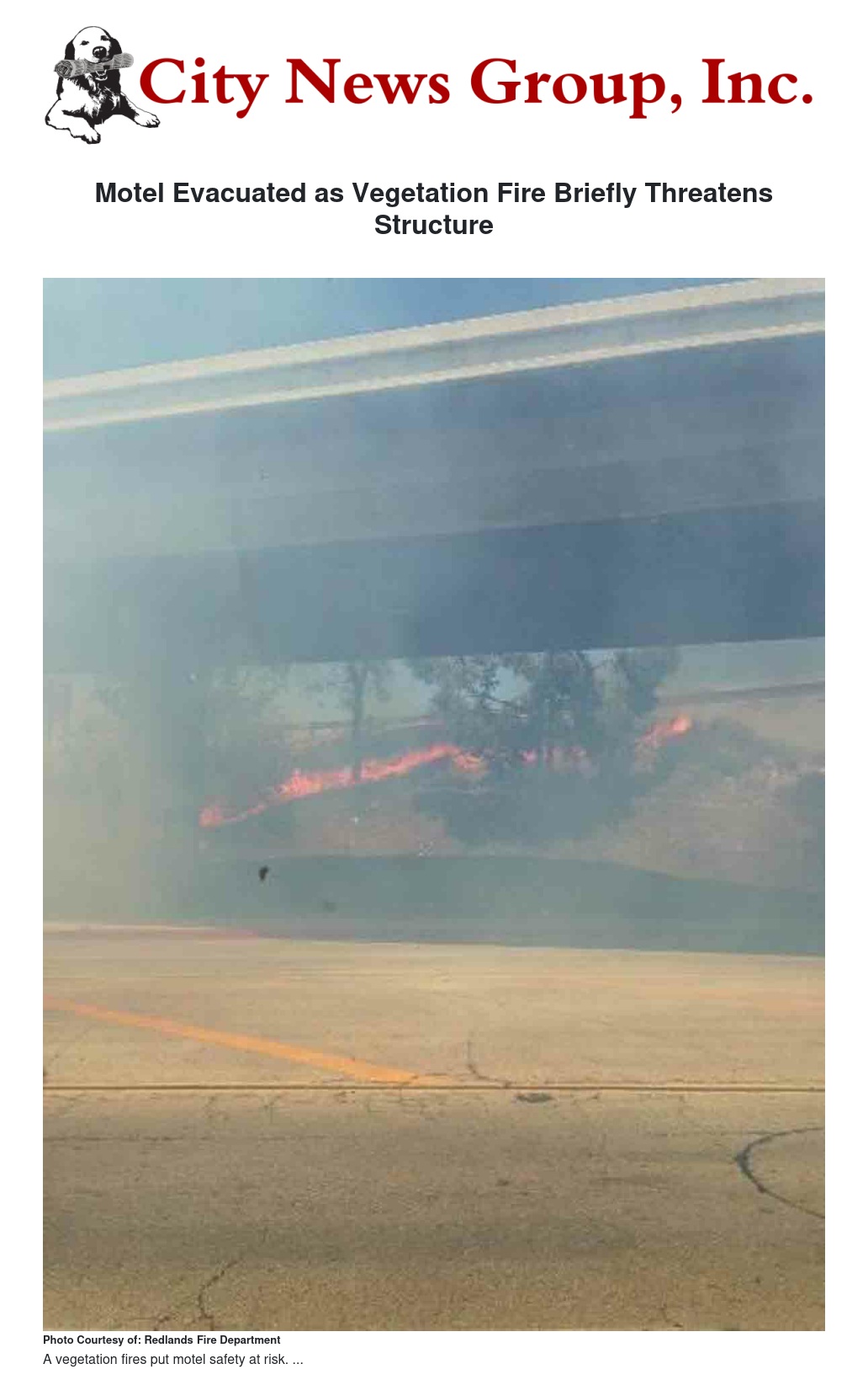Residents of a motel were evacuated as Redlands firefighters, with some help from City mechanics, fought a vegetation fire that briefly threatened the structure last Wednesday afternoon.