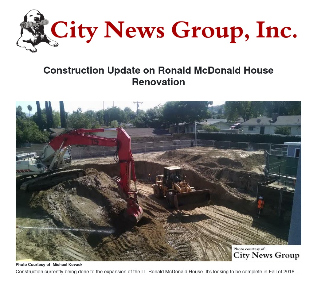 As many community members are aware of the ongoing Ronald McDonald House project in Loma Linda, the completion is expected to be around this time next year according to Mike Kovack, Executive Director of Ronald McDonald House of Charities of Southern California, Loma Linda House.