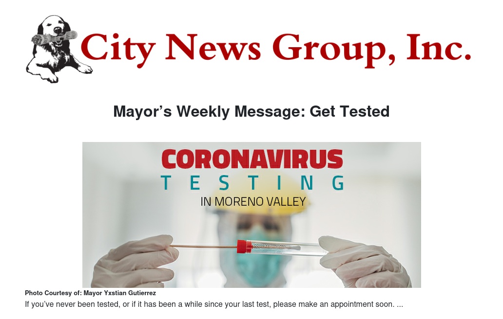 Mayor’s Weekly Message: Get Tested by Mayor Yxstian Gutierrez - City News Group, Inc.
