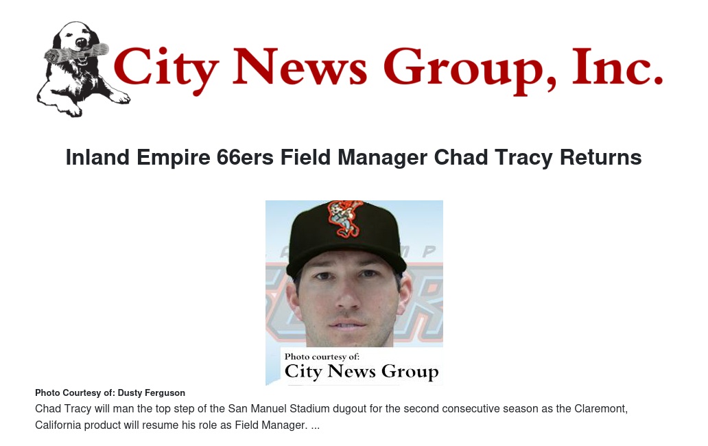 Inland Empire 66ers Field Manager Chad Tracy Returns