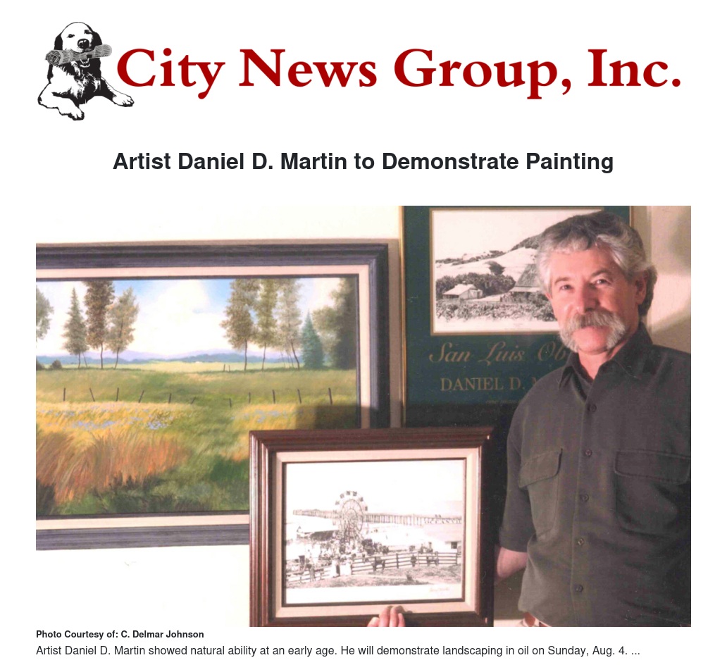 Celebrated artist of the central California coast Daniel D. Martin will be the featured demonstrator at the Loma Linda Cultural Arts Association this Sunday, Aug. 4, from 2 to 4 p.m. at the Loma Linda Senior Center. His subject will be a landscape done in oils.