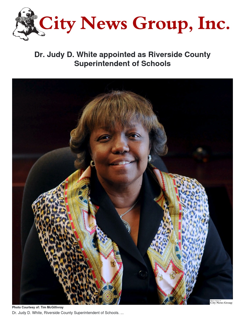 Dr. Judy D. White appointed as Riverside County Superintendent of Schools