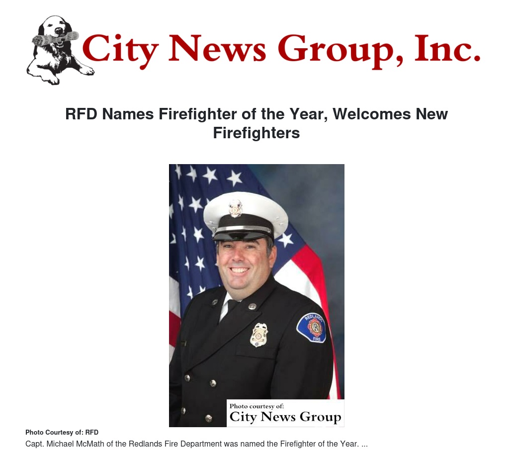 “Michael has taken it upon himself to gain the formal education and experience necessary to fill a critical need for information technology within the fire service,” said Redlands Fire Chief Jeff Frazier. “His abilities have been pivotal in a number of new programs that he has been able to participate in and lead the Department into uncharted territory.