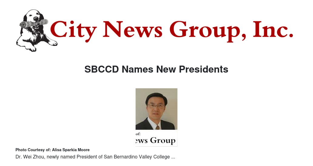 SAN BERNARDINO >> The Board of Trustees of the San Bernardino Community College District (SBCCD) named Dr. Wei Zhou as the new President of Crafton Hills College (CHC) and Diana Rodriguez as the new President for San Bernardino Valley College at their regular meeting on June 9. Both will start their positions in early July.