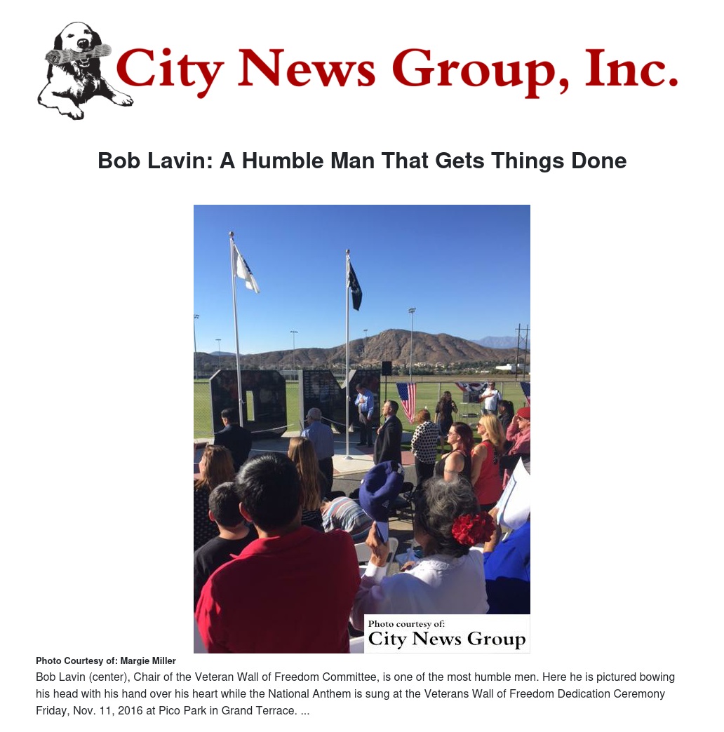 GRAND TERRACE>> Bob Lavin wears many hats as he is constantly doing good works to help the community and veterans who have served our country.