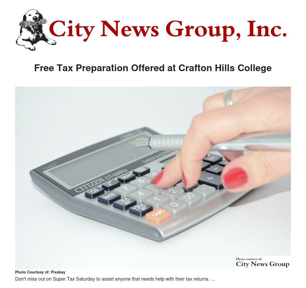 Free Tax Preparation Offered at Crafton Hills College
