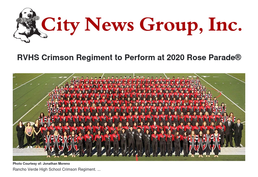 RVHS Crimson Regiment to Perform at 2020 Rose Parade® by Jonathan Moreno - City News Group, Inc.