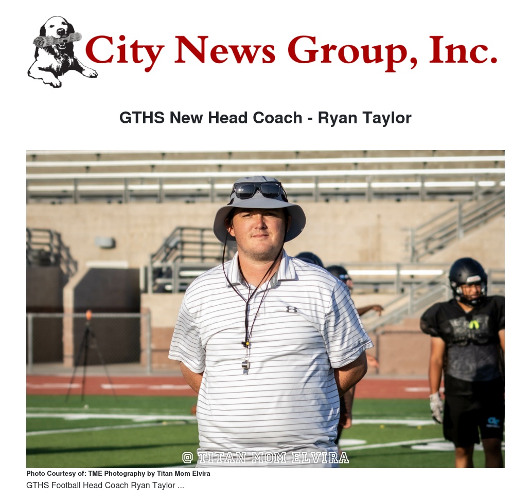 It's clear that Coach Taylor is passionate about the GTHS football program and the community it represents. His excitement to collaborate with the staff and build on the program's foundation reflects his dedication to making a lasting impact. With his leadership, the Titans are poised for growth and success in the seasons to come.