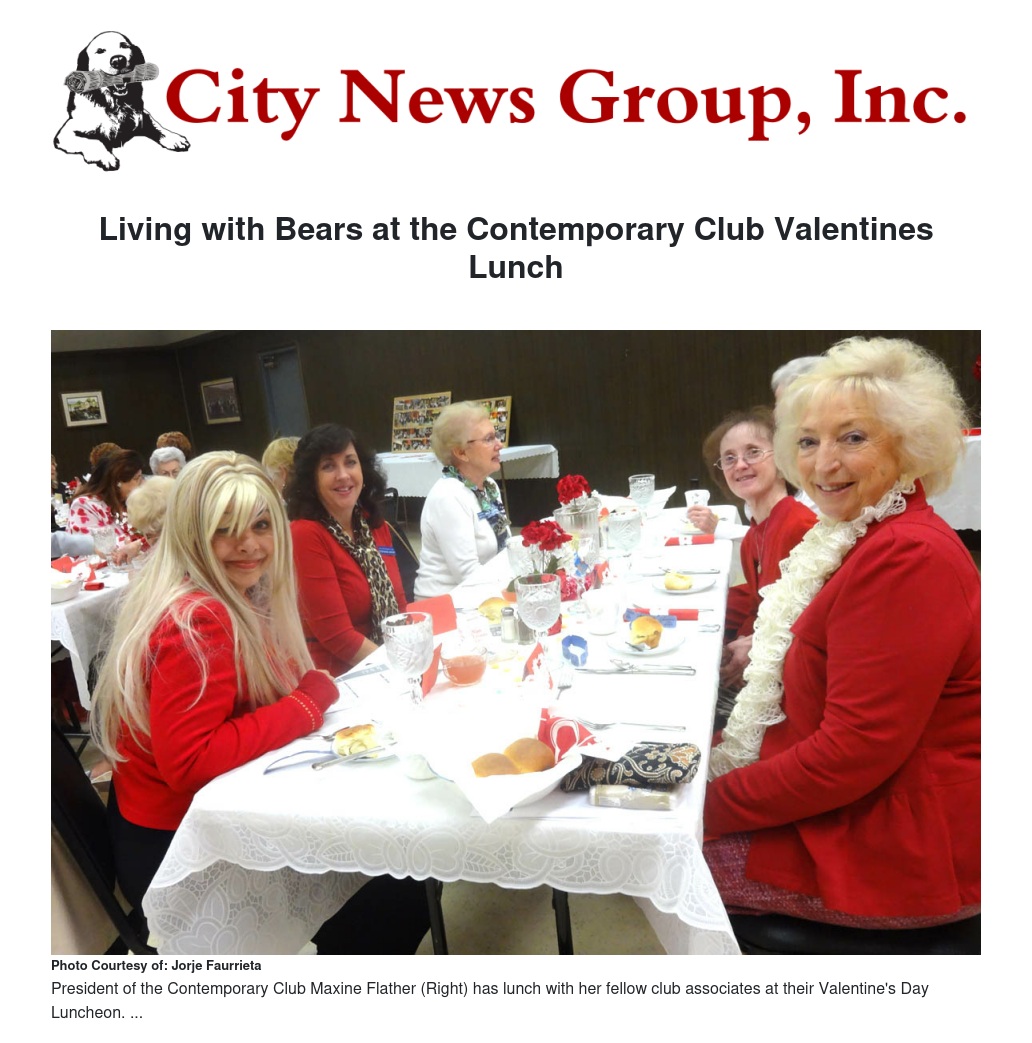 Members of the Contemporary Club of Redlands, a women's club that was founded in 1894, gathered on Feb. 10 at noon for a fun Valentine's luncheon in their Redlands-based clubhouse. Featured in the program for the luncheon was one of their very own, longtime club members Jean Hyman and her vintage collection of stuffed teddies.