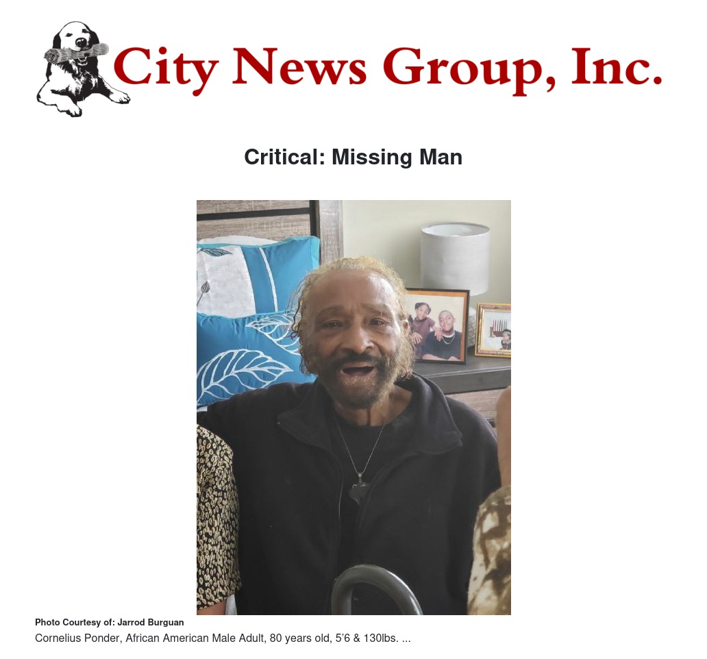 On June 7, 2019, at approximately 7:30 a.m., Cornelius Ponder was last seen at the Casa Linda Apartments in the 500 block of E. Wier Rd in San Bernardino and possibly seen in the area of Barton Rd and Oakwood at approximately 10:30 a.m.. Mr. Ponder has no prior history of being a missing person, and is not familiar with this area. He suffers from dementia and uses a silver cane to walk He was last seen wearing a military style hat, light-blue plaid shirt and blue or black jeans. If you see this person please contact the San Bernardino Police Department’s Dispatch center at (909) 383-5311.