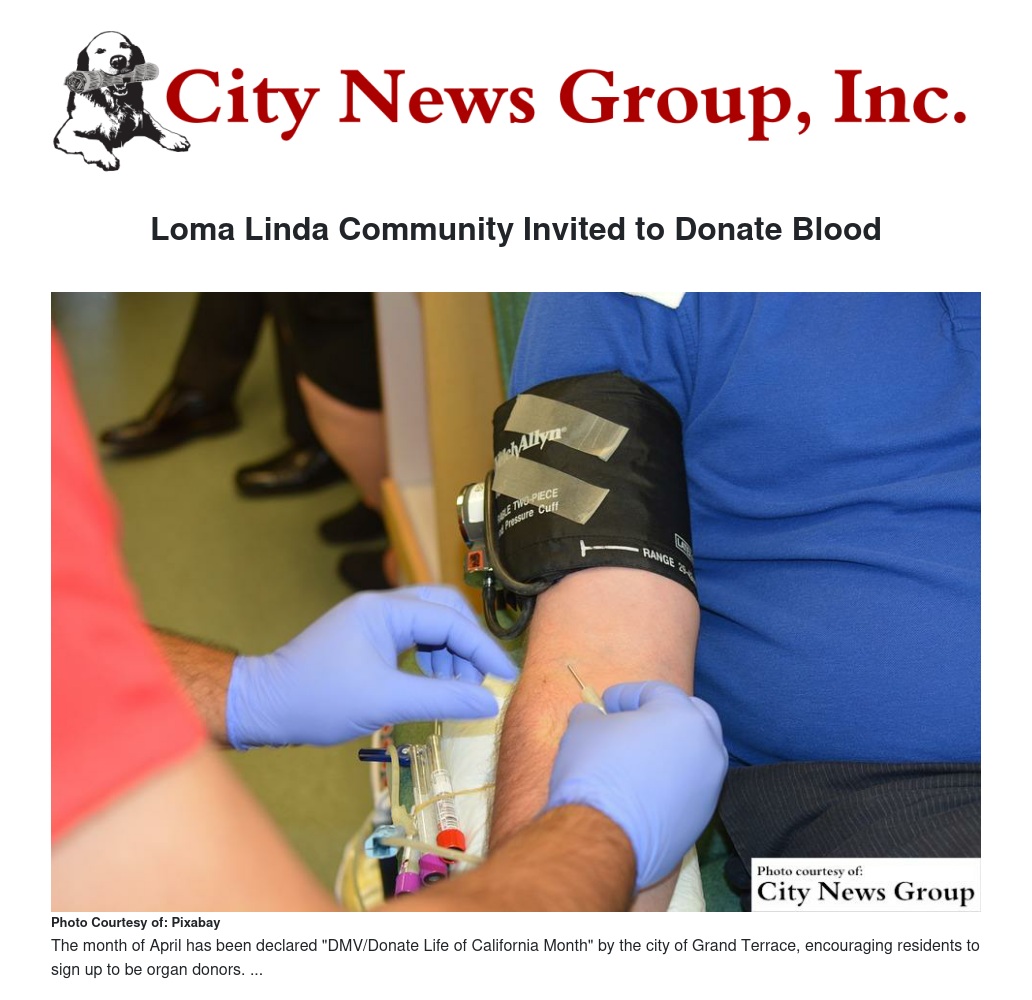 Loma Linda Community Invited to Donate Blood
