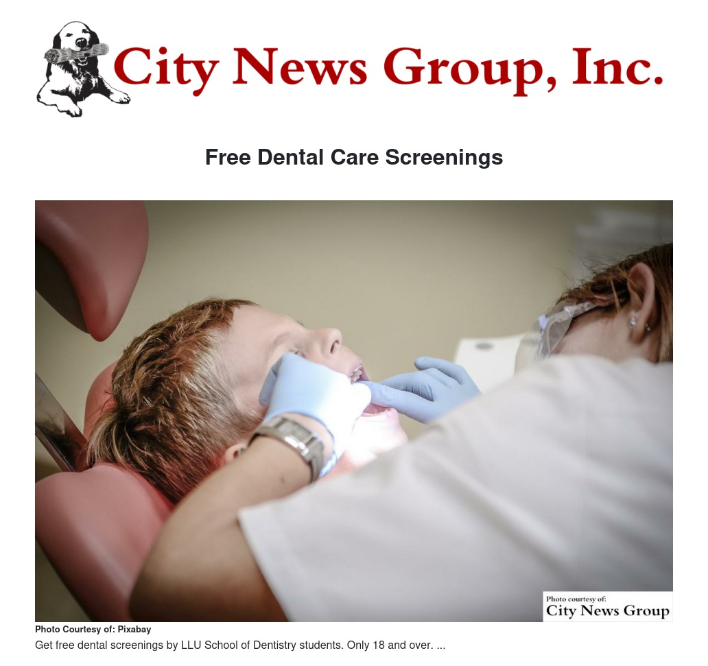 In preparation for their dental licensing exams, graduating dental students from Loma Linda University School of Dentistry will screen for adult patients (18 and over) who need specific dental treatments, including fillings and dental cleanings.