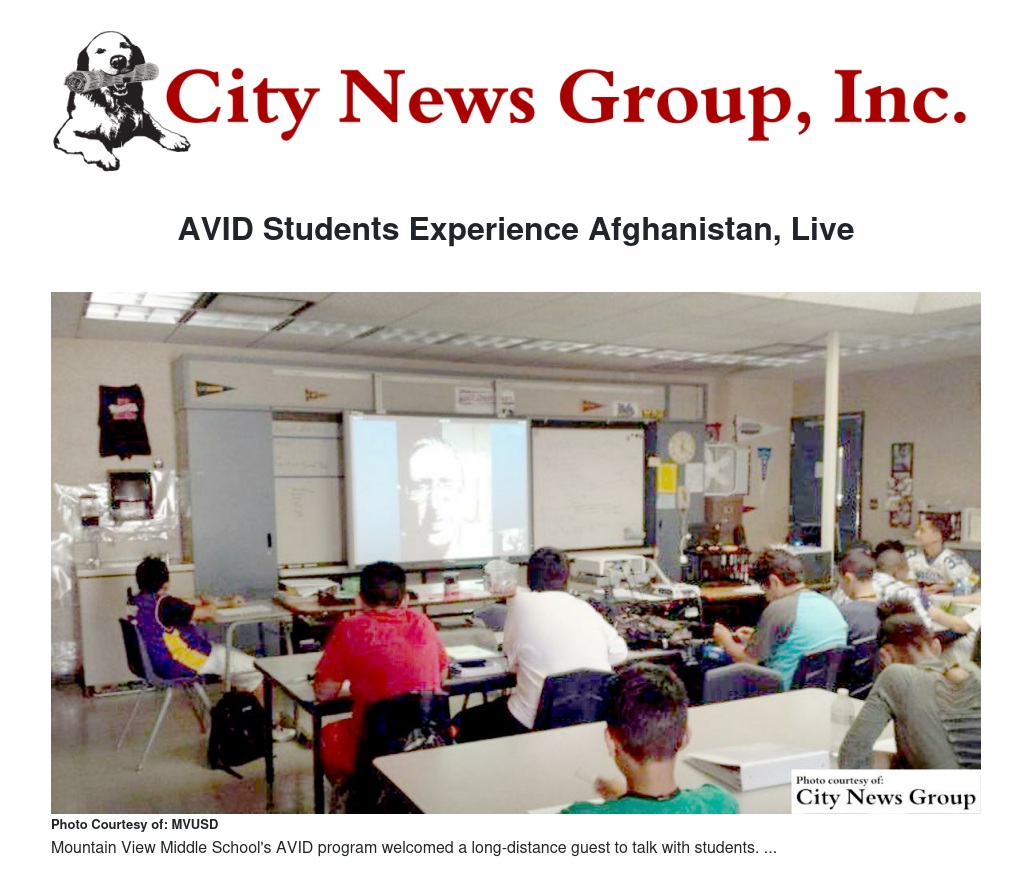 Mountain View Middle School's AVID program has had a number of interesting speakers visit to talk with students, but recently, they welcomed a long-distance guest, U.S. Air Force Sgt. Matthew Garrett, who is currently stationed at Bagram Air Force Base in Afghanistan.
