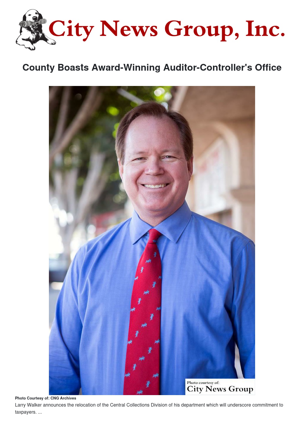 Walker was presented with a Certification of Achievement for Excellence in Financial Reporting and an Award of Outstanding Achievement in Popular Annual Financial Reporting from the Government Finance Officers' Association. He was also presented with the State Controller's Award for Counties Financial Transactions Reporting, having achieved the highest quality in California governmental accounting and financial reporting.