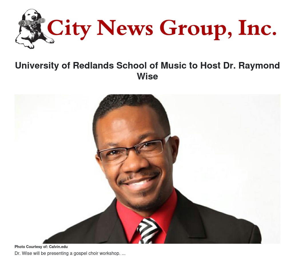 University of Redlands School of Music to Host Dr. Raymond Wise