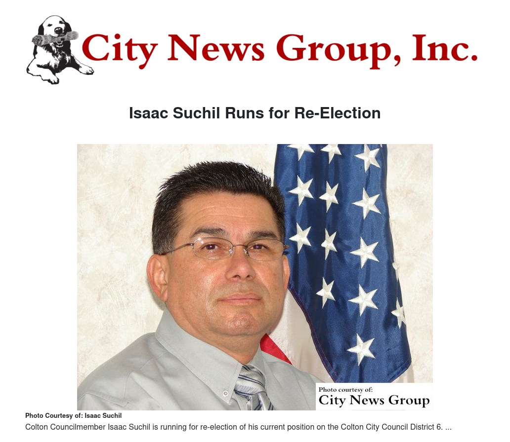 Suchil has received numerous endorsements that include Josie Gonzalez, San Bernardino County Supervisor; Richard DeLaRosa, Colton Mayor; and current City council members David Toro, Frank Navarro and Dierdre Bennett.