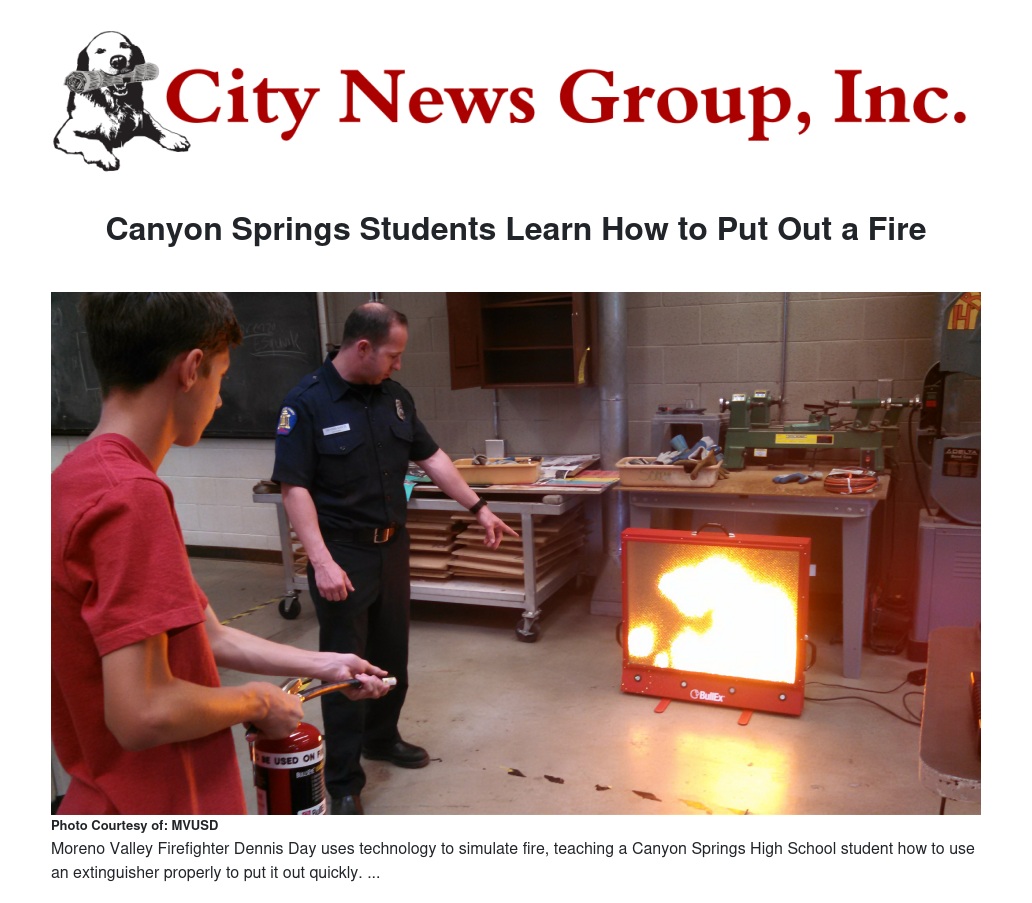 That means you need to know where the nearest extinguisher is, how to get if off the wall and how to use it the right way, because you only have a 20-second chance to use it to douse the flames. Students at Canyon Springs High School now know all that and more after two days of training from Moreno Valley firefighters.