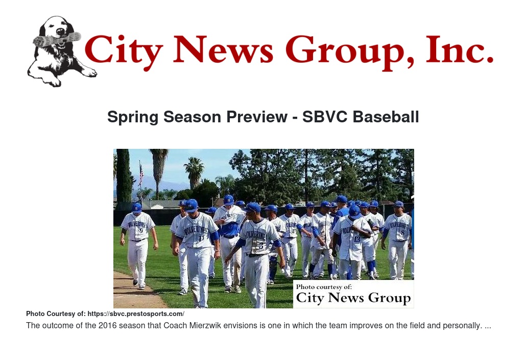 SBVC baseball looks to continue the recipe for success that has brought the team the past three consecutive Foothill Conference titles; and it is expected that early in the 2016 season, head coach Bill Mierzwik will pass the 600 win plateau.