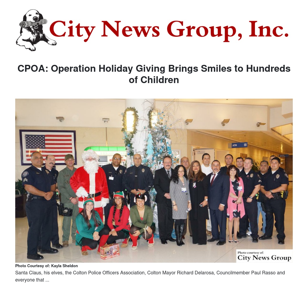 The Colton Police Officers Association (CPOA) wanted to bring all these families, especially the children, a little Christmas spirit plus some toys and candy too. Operation Giving is now one of their holiday traditions.
