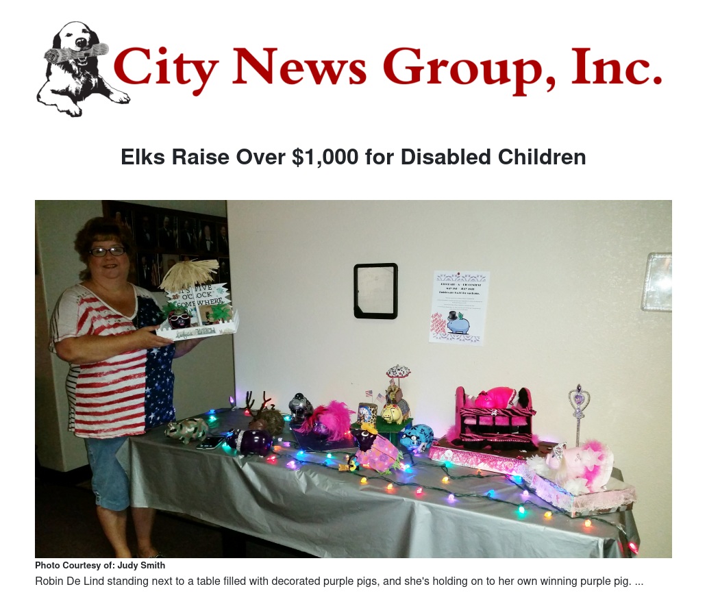 Elks call this fund-raiser for disabled children their Major Project and their symbol is purple piggy banks to encourage contributions to the major project. Every year, Elk members decorate their purple piggy banks and enter local lodge contests.