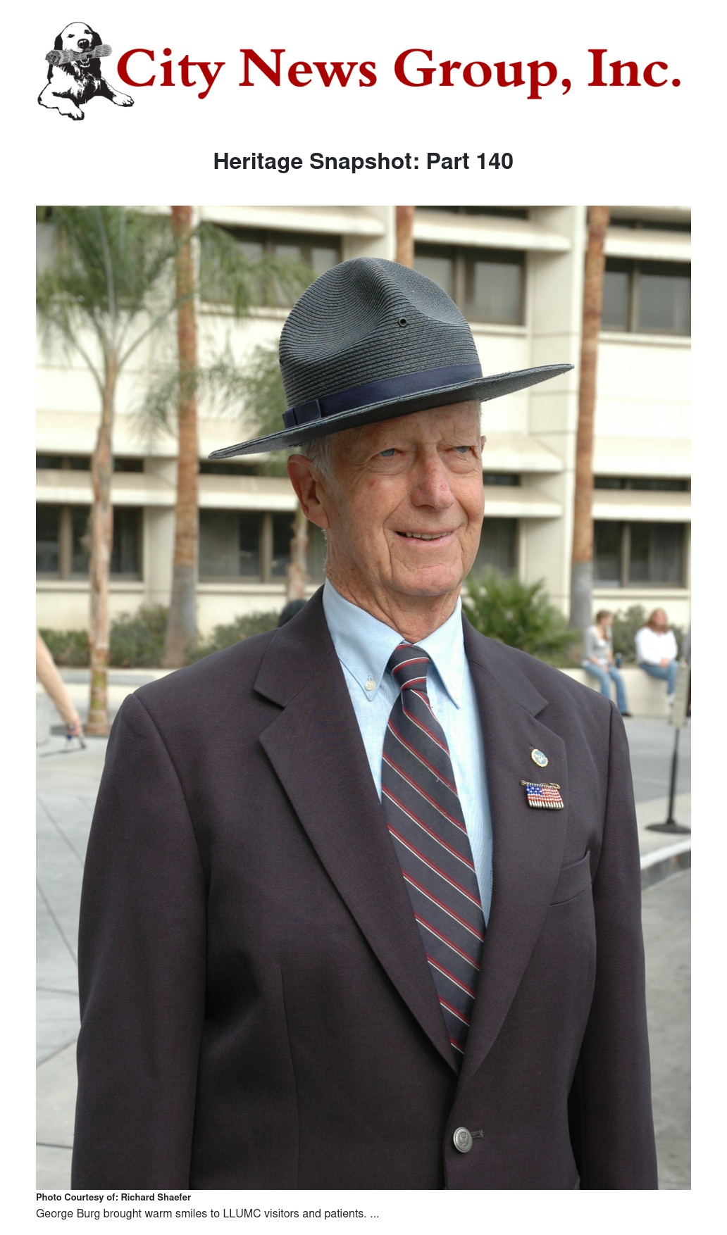First employed at Loma Linda University Medical Center in 1976, George Burg had the simple gift for making people feel good. He had the ability to make visitors and patients feel welcome and at ease and at the same time kept traffic flowing smoothly around the circular drive at the main entrance. Many of his contacts needed assistance in and out of their vehicles. Some needed wheelchairs and an escort into the lobby. All got a friendly smile, a feeling which invariably translated into goodwill toward the institution. Philanthropists made donations to the International Heart Institute and the Cancer Institute in his honor.