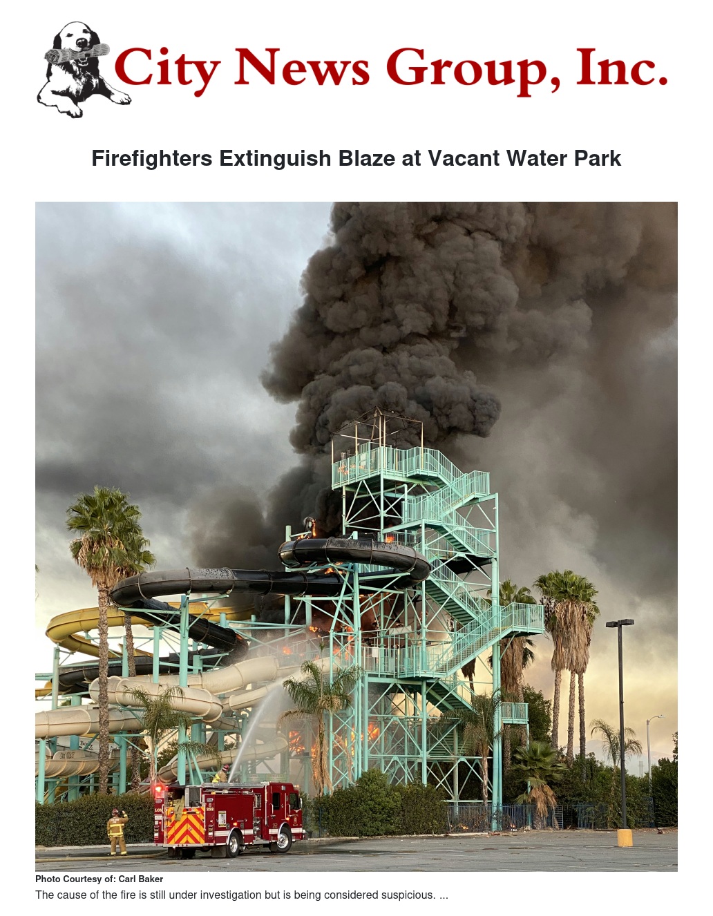 Firefighters found flames and heavy smoke in the water park area of the vacant park. It took firefighters less than 30 minutes to extinguish the blaze. Crews remained on scene for another hour.