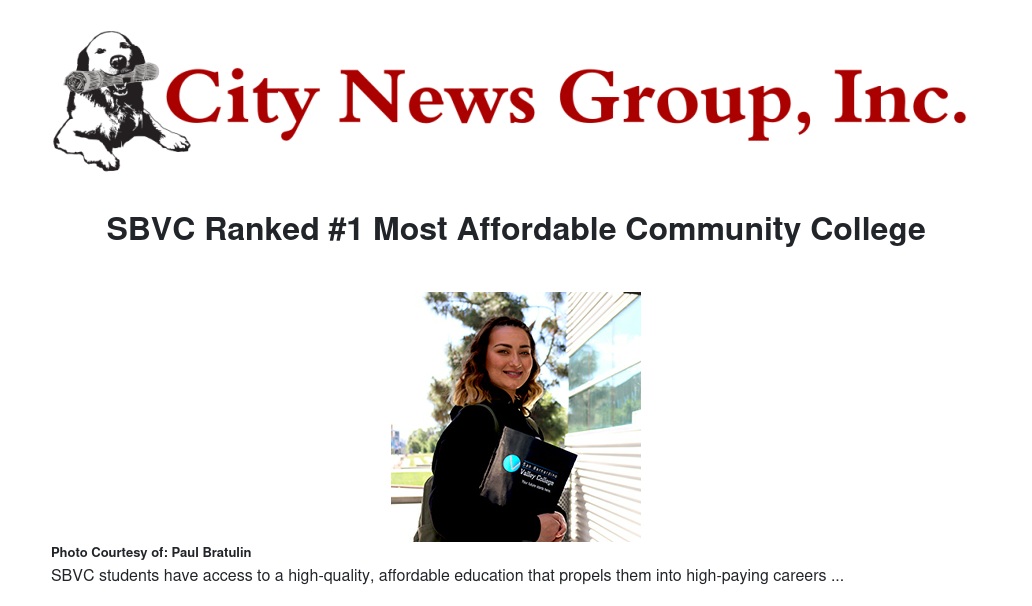 SBVC Ranked #1 Most Affordable Community College by Paul Bratulin - City News Group, Inc.