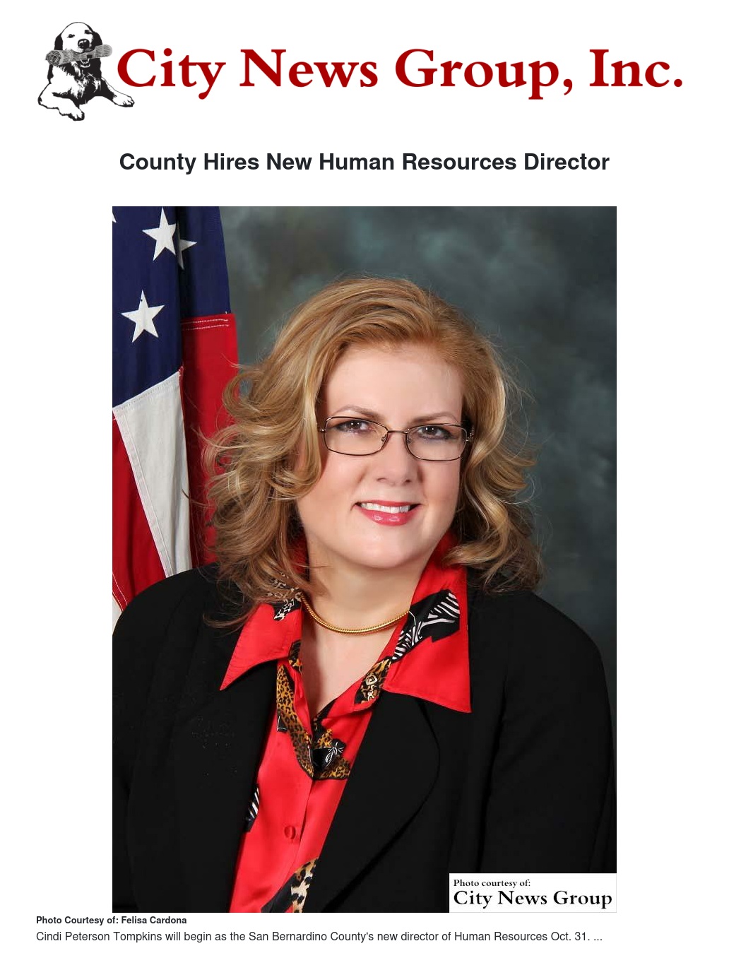 SAN BERNARDINO>> Cindi Peterson Tompkins, has been selected as San Bernardino County’s new director of Human Resources and will begin leading Human Resources on Oct. 31.