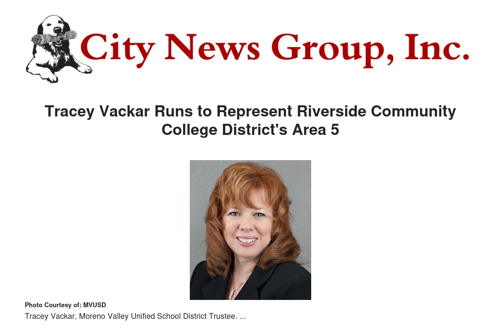 Tracey Vackar Runs to Represent Riverside Community College District's Area 5