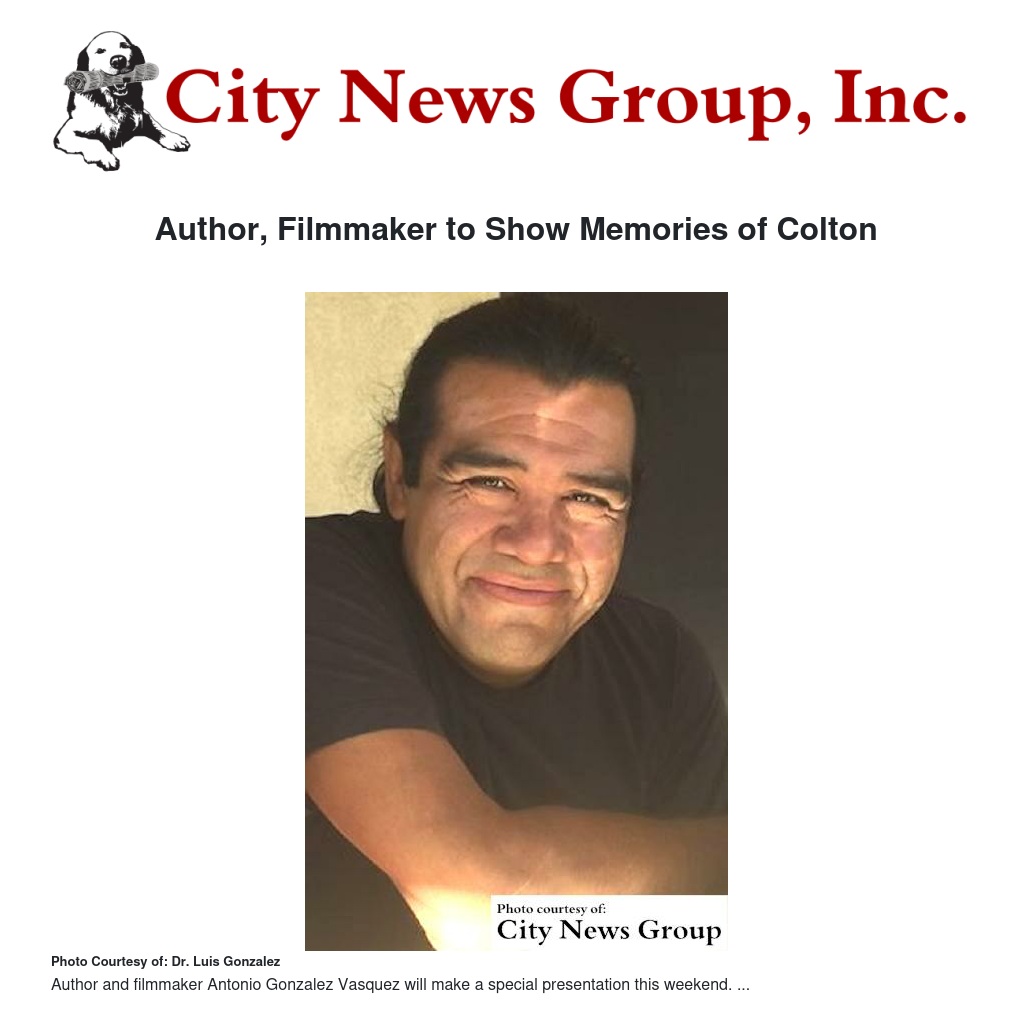 Author and filmmaker Antonio Gonzalez Vasquez will make a special presentation titled Hub City Heroes: Memories of South Colton, hosted by the Colton Area Museum Association, on March 14 at 2:30 p.m. at the museum, 380 N. La Cadena Drive.