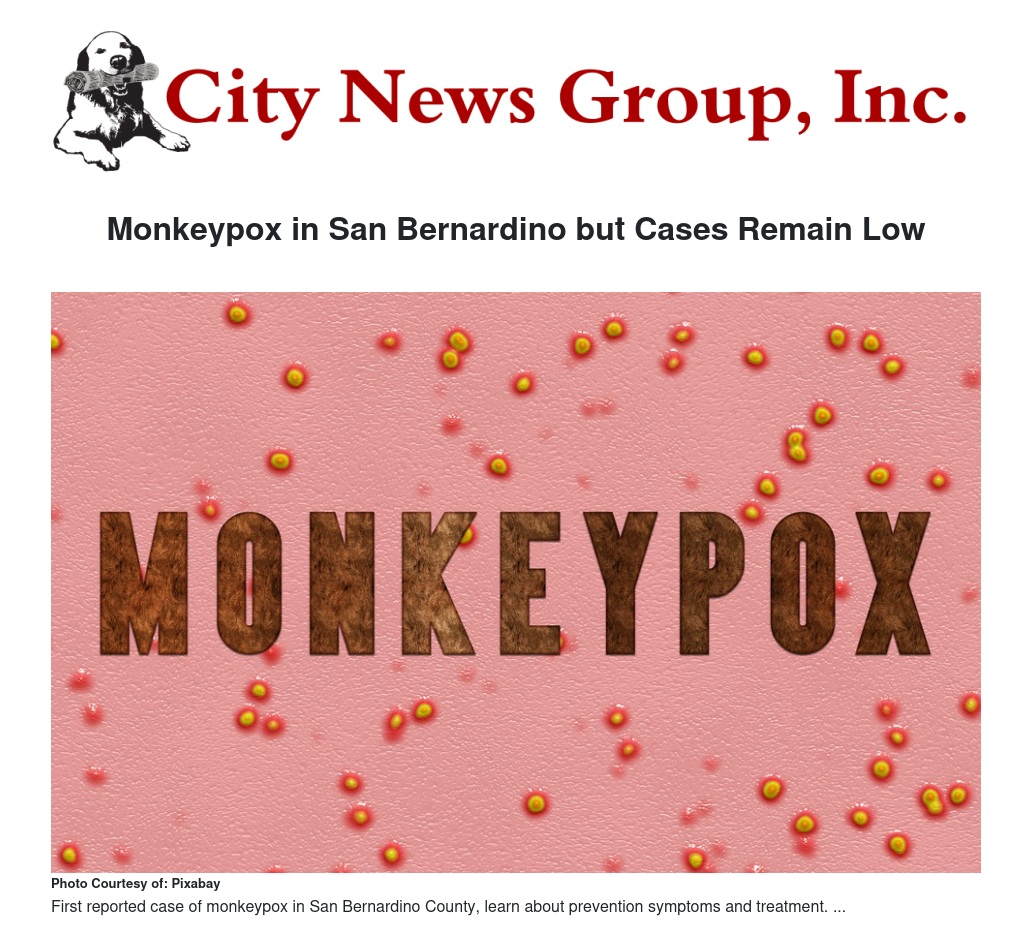 Monkeypox in San Bernardino but Cases Remain Low by Supervisor Hagman - City News Group, Inc.